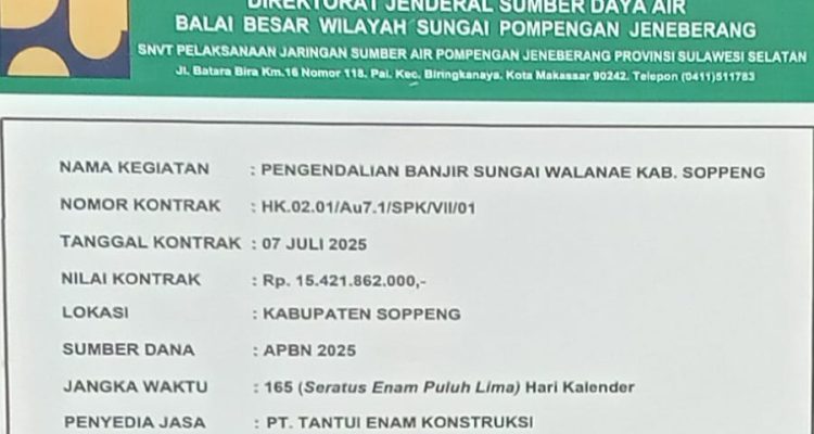 Soppeng, Prokontra.online — Proyek Pengendalian Banjir Sungai Welanae di Kabupaten Soppeng mendapat sorotan Selanjutnya